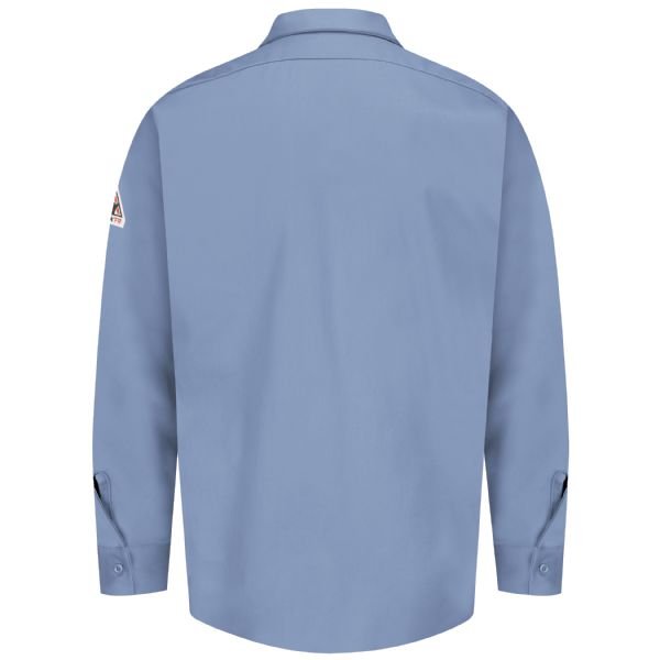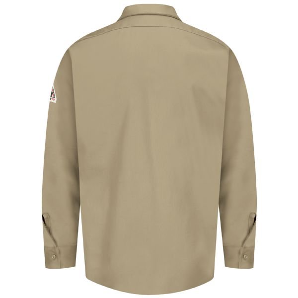 This FR work shirt is designed for comfort and compliance, offering CAT 1 FR/AR protection for flash fire and arc flash hazards. Made from 7 oz. EXCEL FR® flame-resistant fabric (100% cotton), it has an ATPV Arc Rating of 7.7. Featuring a button-down front, lay-flat collar, and two chest pockets with button flap closures and a pencil stall, this shirt is both practical and durable. The one-piece lined cuffs with closures and hemmed front provide a polished look, while its regular fit ensures all-day comfort. Industrial laundry-friendly and compliant with ASTM F1506, NFPA 2112, and NFPA 70E, this shirt is a reliable choice for work environments requiring FR protection.